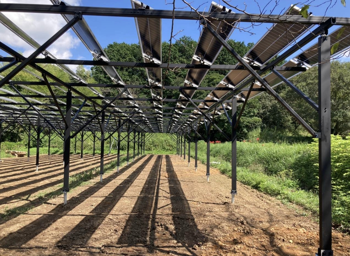 農地の上に藤棚のような高い架台を建て、